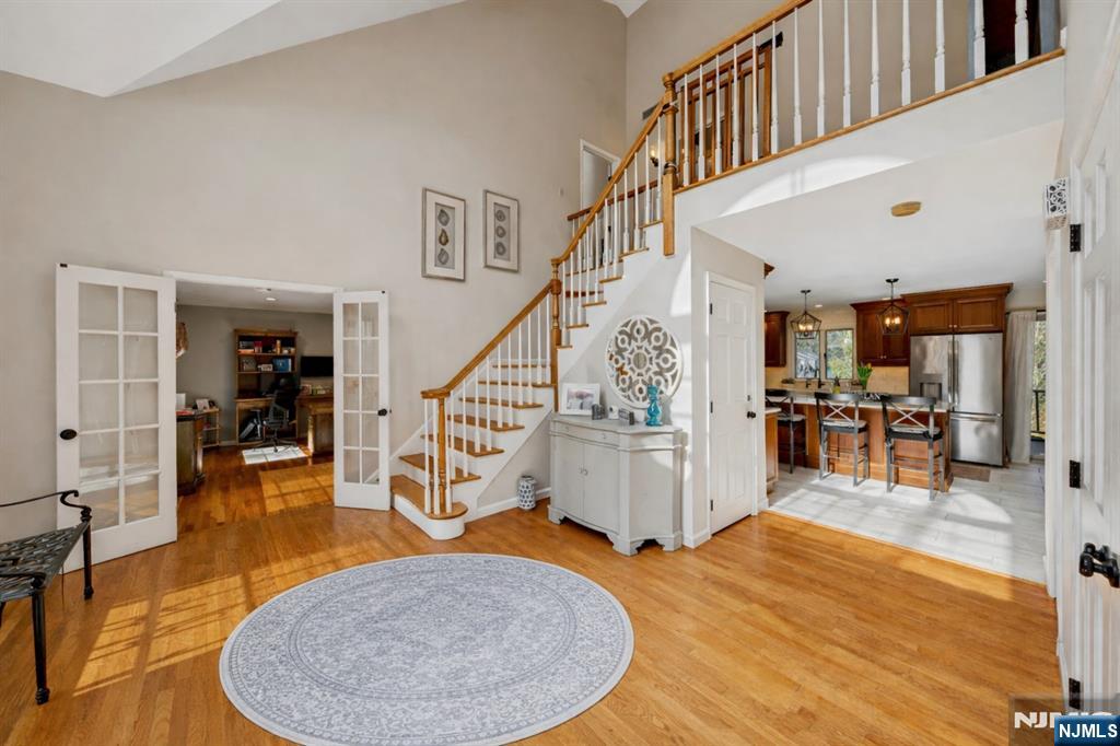 Set on a cul-de-sac in Oakland’s desirable Dogwood section just steps from the center of town, this 3,135 sq ft Colonial offers the space, flow, and lifestyle today’s buyers seek. Blending classic design with thoughtful updates, the home features a layout well suited for everyday living and entertaining.Attractive curb appeal and professionally designed landscaping create a strong first impression. Inside, a two-story foyer opens to bright interiors with hardwood floors throughout.The 15x30 family room, with a stone fireplace, flows into the updated kitchen and out to the multi-tiered deckâ€â€쳌perfect for entertaining or relaxing.A dining area and formal dining room are ideal for everyday meals and special occasions.The main level also includes a den/office and powder room, with French doors throughout adding character and separation while maintaining an open feel. Upstairs, 4 spacious bedrooms and 2 full baths provide comfortable accommodations, including a primary suite designed as a private retreat with a spa-like bath for relaxation. The walk-out lower level extends the living space and opens to a fenced-in yard with a paver patio. It also includes flexible space for recreation, fitness, or extended living, along with a mudroom, storage room, and access to an expanded two-car garage.Part of the highly regarded Ramapo/Indian Hills FLOW School District and near downtown businesses, recreation complex, and NYC transportation. Easy access to Routes 202, 208 &