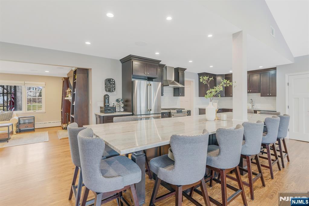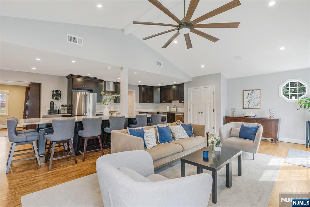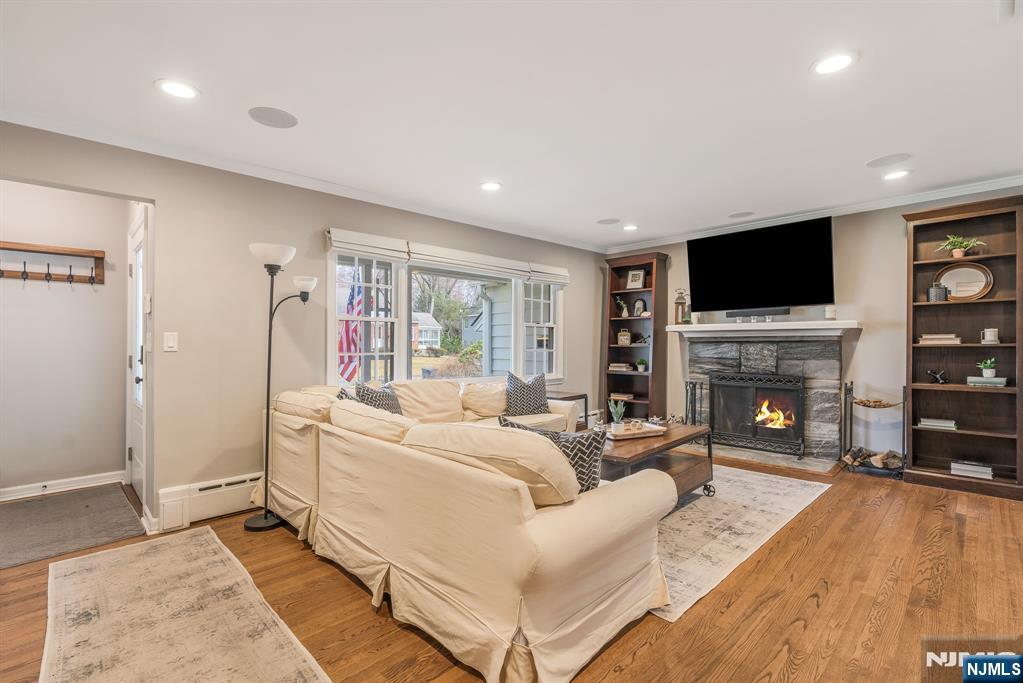 Welcome to this beautifully expanded ranch nestled in one of Wyckoff’s most charming neighborhoods. This spacious 4BR, 2bath home offers the perfect blend of comfort, functionality & modern living. Step inside to the inviting LR (or optional formal DR) featuring a lovely cozy wood burning fireplace. Next , the incredible great room expansion with vaulted ceiling, oversized beautiful modern kitchen, dining area and dual-sided gas fireplaceâ€â€쳌truly the heart of the home. This bright open space is ideal for everyday living and entertaining alike, boasting abundant cabinetry, generous counter space and tons of storage (island seats 12!). This lovely home offers 4 well-appointed Brs with ample custom closet space and 2 full bathrooms designed for convenience. Additional highlights include HW floors, abundant natural light, and flexible living areas to suit your needs. The lower level is open and spacious with storage, W/D, full bathroom and BR. The great room FP is dual-sided and opens to the peaceful fenced in backyard creating a perfect indoor-outdoor connection. Situated on a beautiful property in a prime location close to top-rated schools, parks, shopping, and transportation, this home presents a wonderful opportunity to enjoy easy one-floor living in a highly desirable community. Now is the time to make this exceptional property your own. Square footage on tax records is not accurate, approx sq footage is 1850sf upstairs + finished lower level space.