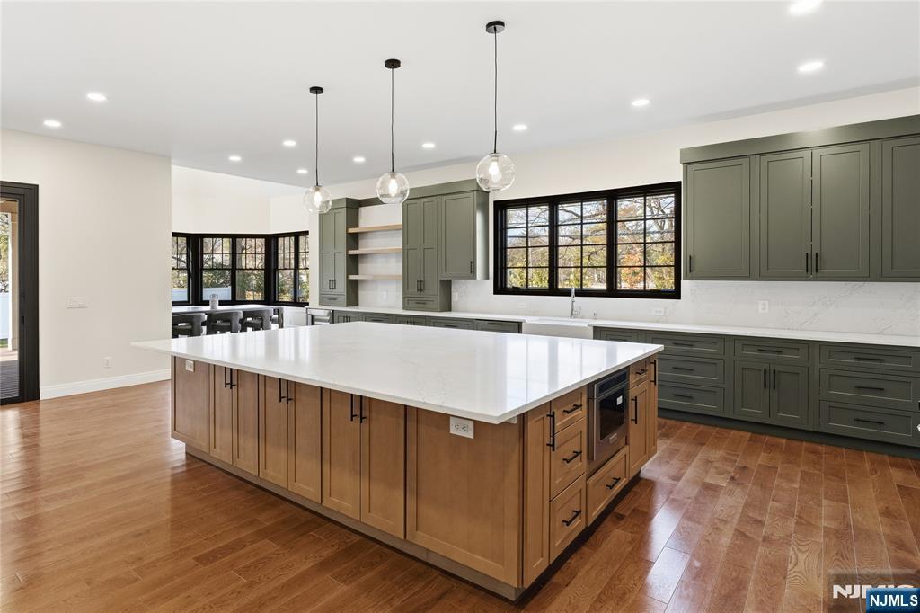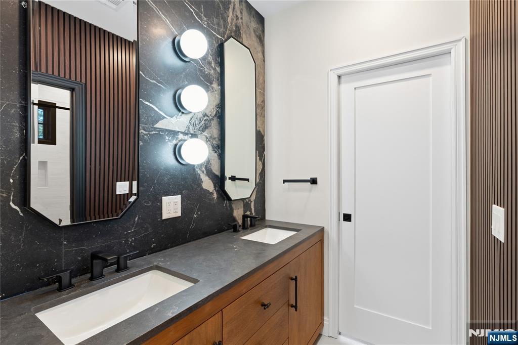 Set in the heart of River Vale, New Jersey, 803 Marshall Road presents a one-of-a-kind new construction defined by bold design and elevated craftsmanship. From the moment you arrive, the home impresses with striking curb appeal and a thoughtfully designed exterior. Inside, white oak flooring and abundant natural light complement soaring 10-foot ceilings and an open, airy layout. The chef-inspired kitchen features a quartzite island, high-end appliances, a spacious pantry, and refined finishes. A rotunda-style dining area offers sunset views, while a 25-foot sliding glass door creates seamless indoor-outdoor living, opening to an expansive deck. The main level includes a bedroom, office, and two full bathrooms, offering flexible living options. Upstairs, the primary suite features coffered ceilings, a custom walk-in closet, and a spa-like bathroom. Three additional en-suite bedrooms and a bonus room provide versatility for a variety of uses. The lower level offers approximately 2,500 sq ft with high ceilings, ready to be customized. Conveniently located near parks, shopping, and transportation, this home offers a rare opportunity in Bergen County. The builder is offering a $20,000 credit toward closing costs, adding exceptional value to this already impressive home.